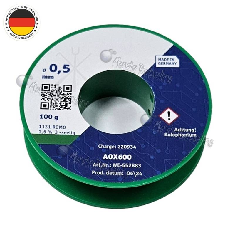 Soldadura WETEC (Alemania). Rollo 0.5mm / 100gr / Sn99,7 Ag Cu Ni
